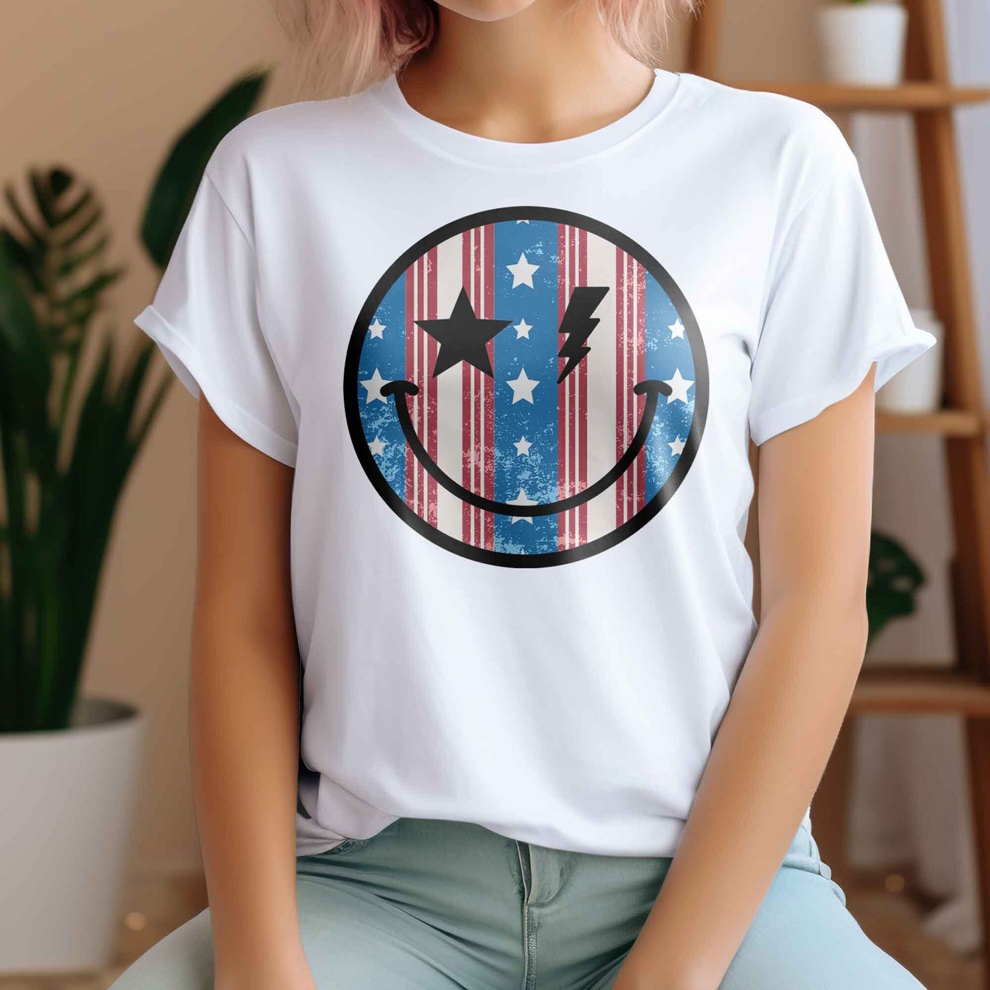 American Smiling Face DTF Transfer, 4th of July DTF Transfer Ready For Press, Heat Press Transfer, 4th of July Transfer, Retro USA Flag Dtf