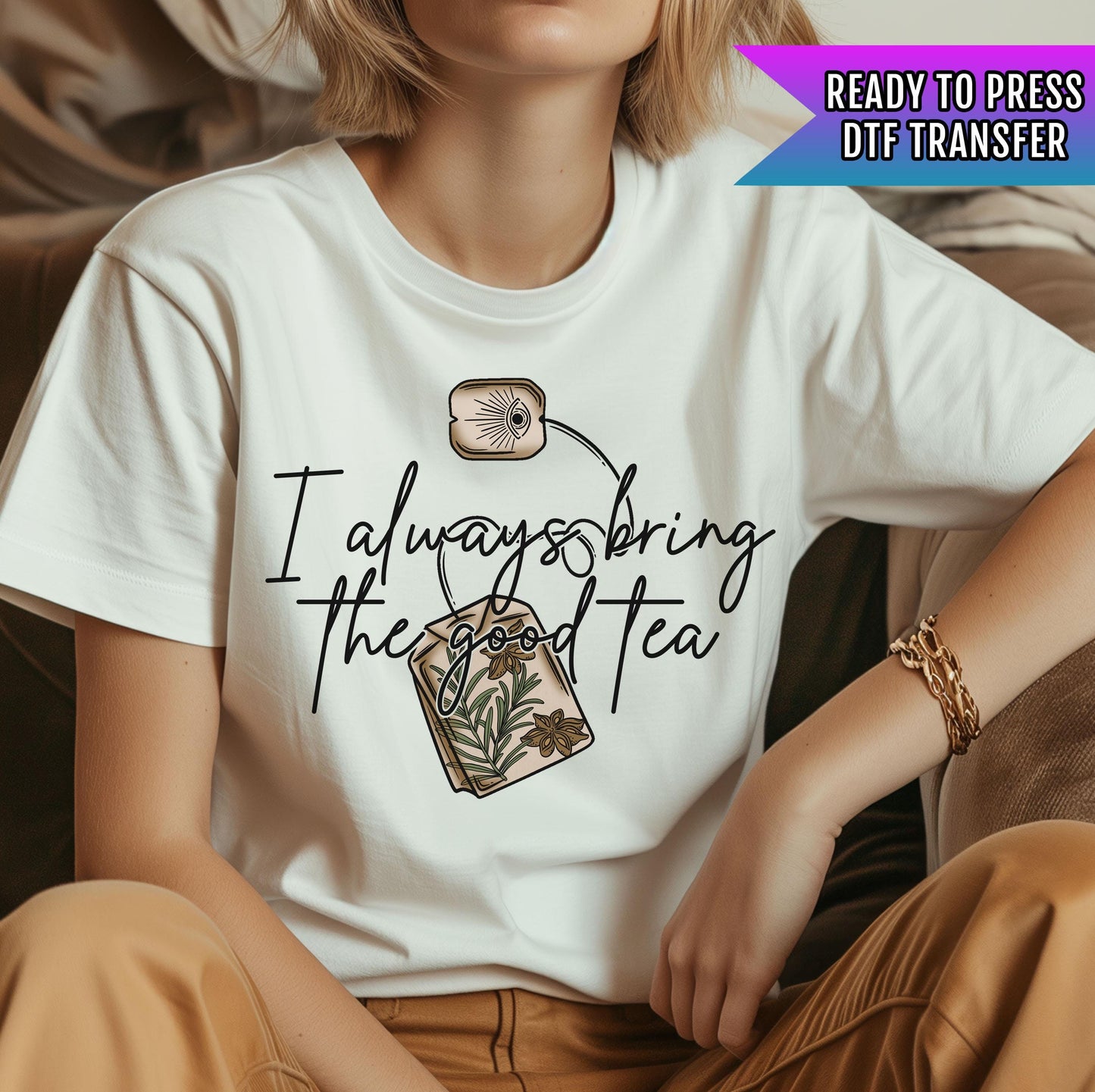 I Always Bring The Good Tea DTF Transfer Ready For Press, Happy DTF Transfer, Heat Press Transfer, Dtf Print,Ready Dtf Transfer,Positive Dtf