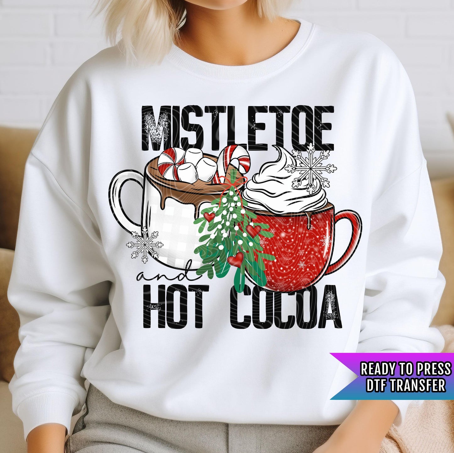 Mistletoe Hot Cocoa Mugs DTF Transfer Ready For Press, Merry Christmas DTF Print, Heat Press Transfer, Direct To Film, Chocolate Season Dtf